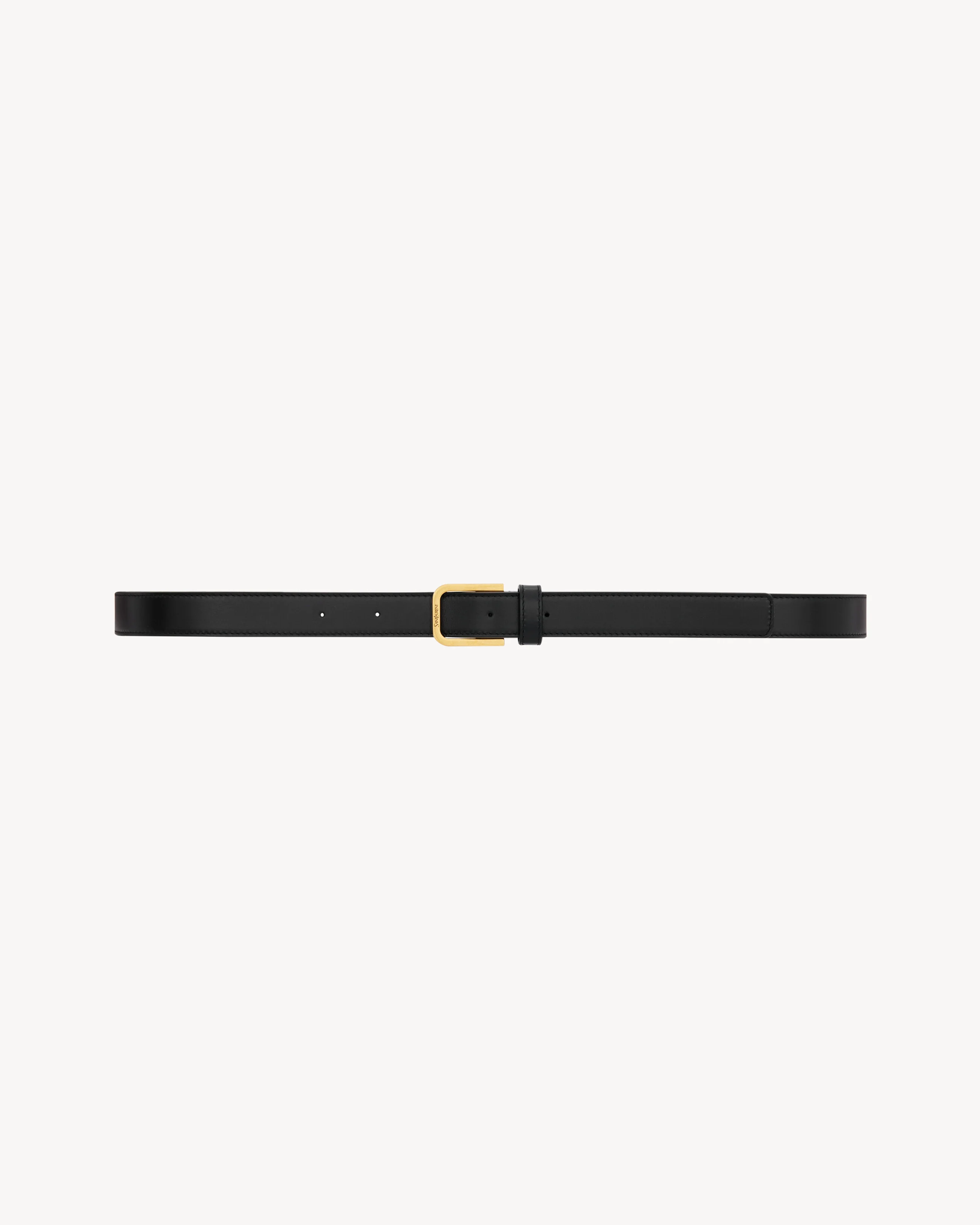 BELT FEATURING A MINIMAL BUCKLE ENGRAVED WITH THE SAINT LAURENT SIGNATURE. - BRONZE-TONED HARDWARE - ADJUSTABLE BUCKLE CLOSURE - WIDTH: 2 CM / 0.7" - CALFSKIN LEATHER, BRASS - STYLE ID 821247AAB2Z1000 - MADE IN ITALY