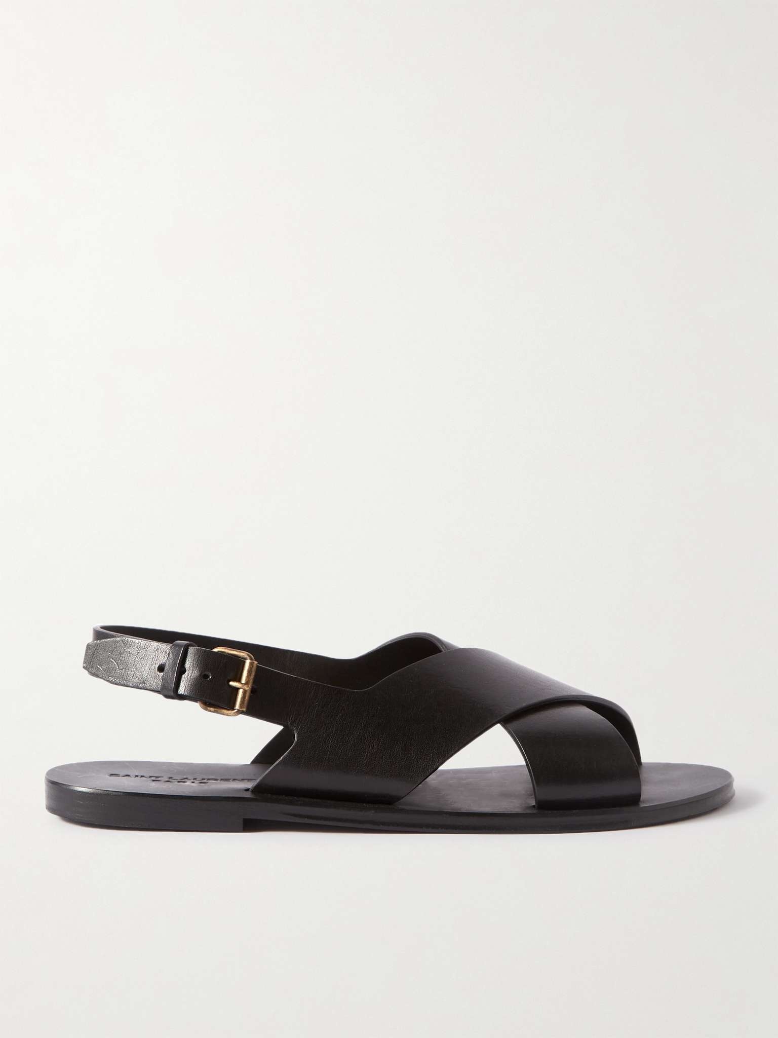SAINT LAURENT's sandals are made from supple black leather that'll wear-in nicely with age. Set on comfortable flat soles, they have classic cross-over straps and adjustable buckles. Size & Fit - Fits true to size. Take your normal size - European sizing Details & Care - Black leather (Calf) - Buckle fastenings