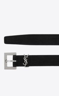 NARROW BELT WITH SQUARE BUCKLE FEATURING A SAINT LAURENT-MONOGRAM LOOP. - 100% GOATSKIN - DIMENSIONS: 2 CM / 0.7 INCHES - SILVER-TONED METAL HARDWARE - ADJUSTABLE BUCKLE CLOSURE - 0 - STYLE ID 612616C200E1000 - MADE IN ITALY