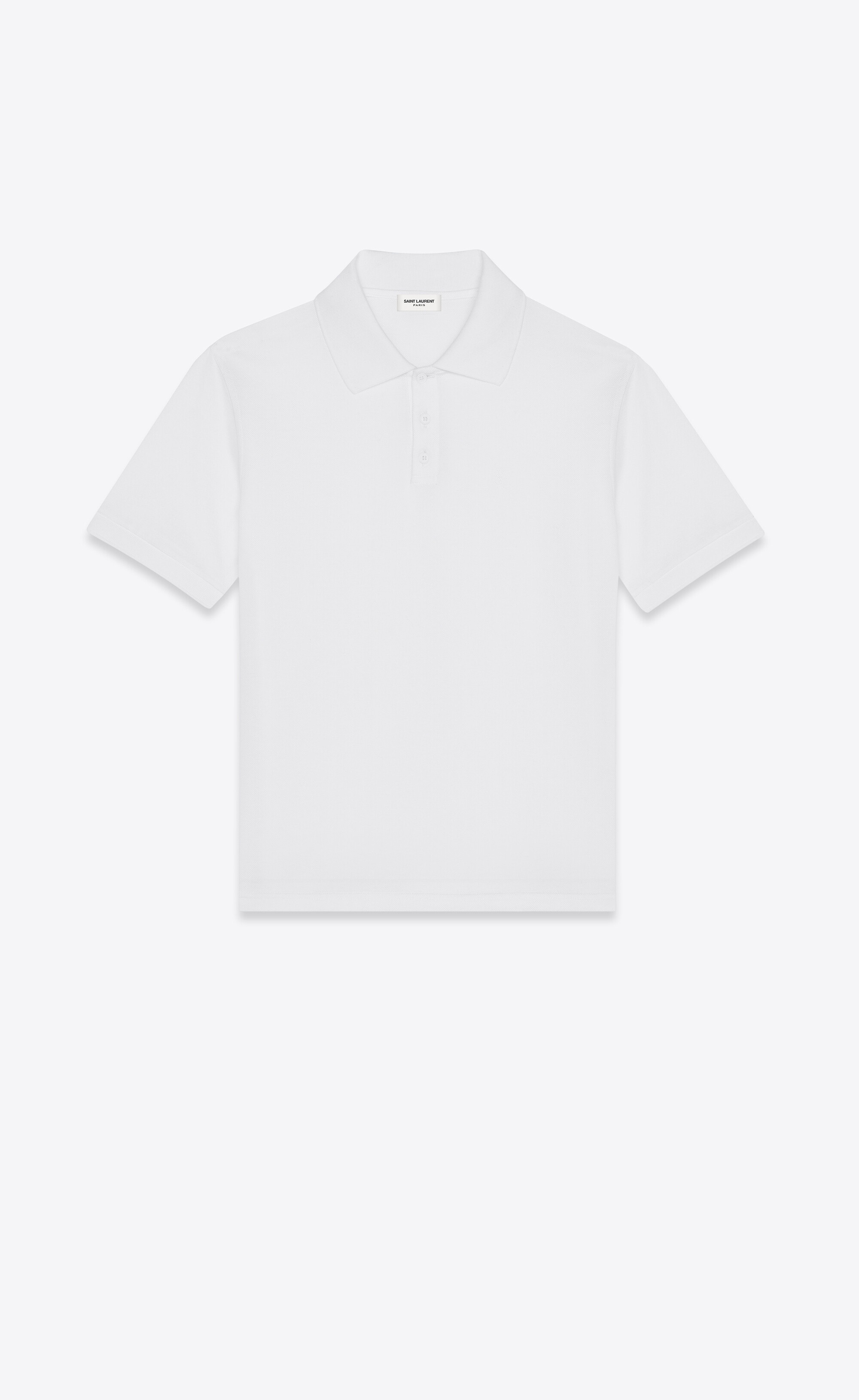 SHORT-SLEEVE POLO SHIRT MADE WITH ORGANIC COTTON, FEATURING TONAL EMBROIDERED YSL INITIALS ON THE CHEST. - 100% COTTON - ORGANIC COTTON - THREE-BUTTON PLACKET AT THE NECK - FLAT-KNIT POLO COLLAR - FLAT-KNIT CUFFS - STYLE ID 712300YB2OC9000 - MADE IN ITALY