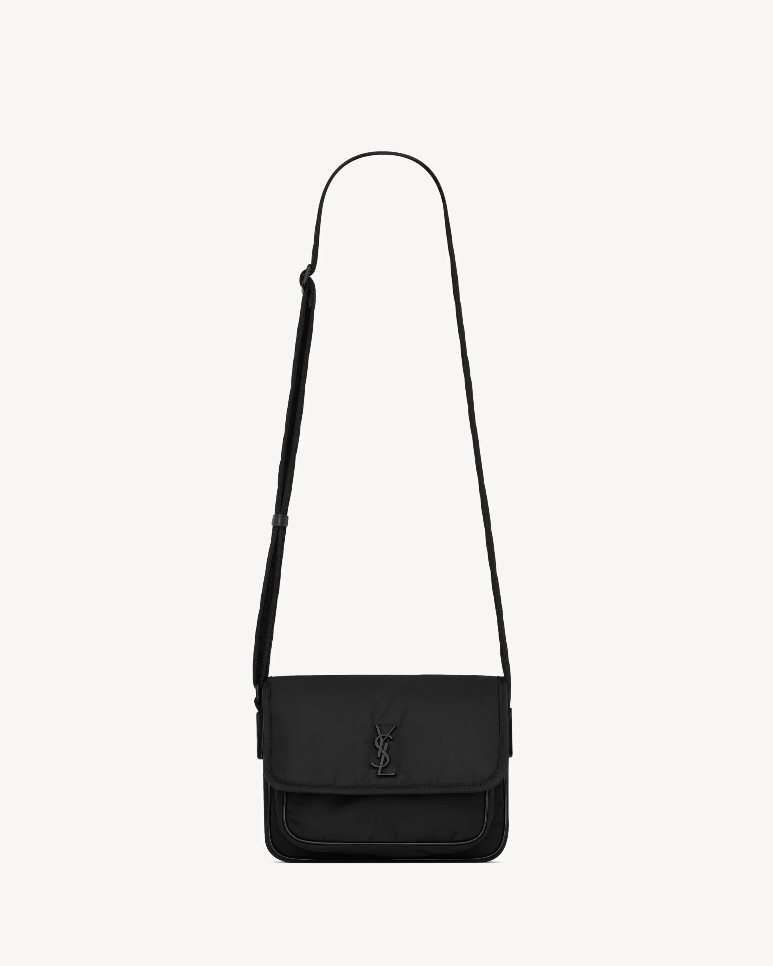 THE SMALL MESSENGER VERSION OF THE ICONIC NIKI BAG IN RECYCLED NYLON, DEFINED BY ITS FRONT FLAP DECORATED WITH THE CASSANDRE. THIS PRACTICAL BAG FEATURES MULTIPLE POCKETS, WHILE AN ADJUSTABLE STRAP ALLOWS FOR BOTH SHOULDER AND CROSSBODY CARRY OPTIONS. - ECONYL® REGENERATED NYLON - MATTE BLACK HARDWARE - SNAP-BUTTON CLOSURE - TWO MAIN COMPARTMENTS - ONE INNER POCKET - DIMENSIONS: 21 X 15 X 6 CM / 8.3 X 5.9 X 2.4 - STRAP DROP: 35–65 CM / 13.8–25.6 - POLYAMIDE, BRASS - STYLE ID 776611FACKH1000 - MADE IN ITALY