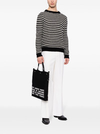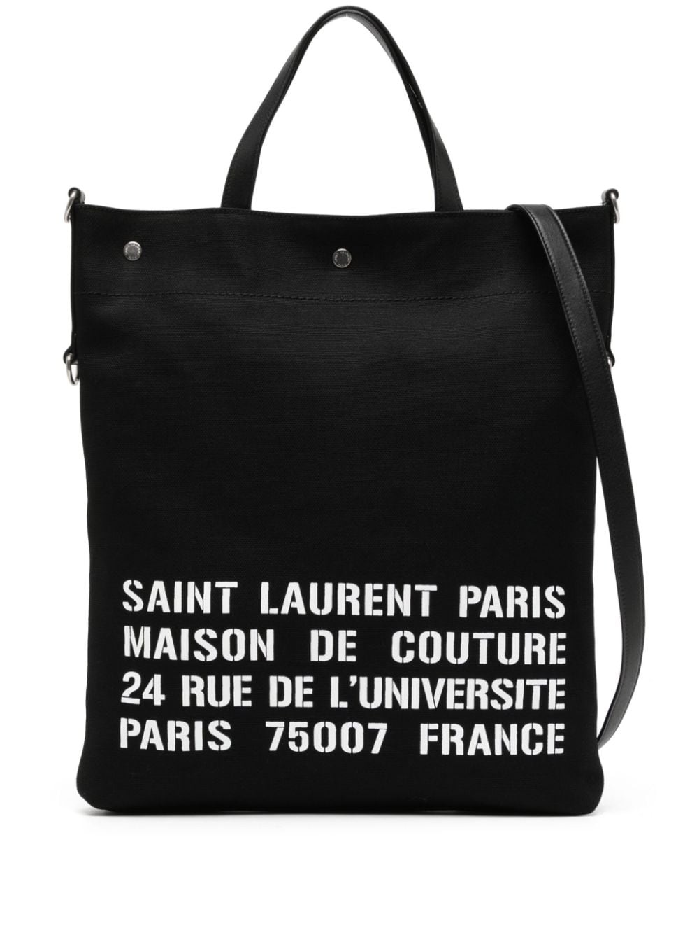 North/South canvas tote bag Highlights - Black - Cotton - Logo print to the front - Text print - Two top handles - Adjustable shoulder strap - Internal zip-fastening pocket - Internal logo patch - Concealed magnetic fastening Composition Cotton 50%, Linen/Flax 50% SIZE & FIT Model measurements Height 6 ft 2 in(1.89 m) Bust/Chest 37.4 in(95 cm) Hips 36.6 in(93 cm) Waist 28.3 in(72 cm) Measurement DEPTH 1.2 in(3 cm) HANDLE 5.5 in(14 cm) HEIGHT 16.9 in(43 cm) STRAP 12.6 in(32 cm) WIDTH 13.8 in(35 cm)