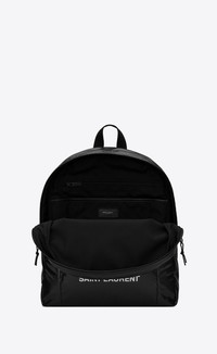 BACKPACK FEATURING A ZIPPERED EXTERIOR POCKET WITH SAINT LAURENT PARIS PRINTED LABEL, FEATURING A PADDED LAPTOP POCKET AND COMPLETE WITH ADJUSTABLE PADDED STRAPS. - 95% POLYAMIDE, 5% BRASS - DIMENSIONS: 32 X 37 X 14 CM / 12.5 X 14.5 X 5.5 INCHES - CARBONE HARDWARE - GROSGRAIN LINING - TWO-WAY TOP ZIP CLOSURE - INTERIOR: ONE MAIN COMPARTMENT, ONE LARGE ZIP POCKET, ONE LARGE PADDED FLAT POCKET, ONE SMALL PADDED FLAT POCKET - EXTERIOR: ONE ZIP POCKET AT THE FRONT, TWO FLAT POCKETS AT THE SIDES - STYLE ID 809354854 - MADE IN ITALY