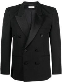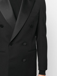 double-breasted tailored blazer jet black wool-silk blend double-breasted button fastening classic lapels long sleeves two side welt pockets tailored cut Made in Italy Composition Lining: Spandex/Elastane 3% Outer: Wool 100% SIZE & FIT Model measurements Height 6 ft 1 in(1.86 m) Bust/Chest 37.4 in(95 cm) Hips 34.64 in(88 cm) Waist 29.13 in(74 cm) FittingInformation This piece fits small – you might want to get one size up Cut for a slim fit Made with a mid-weight fabric