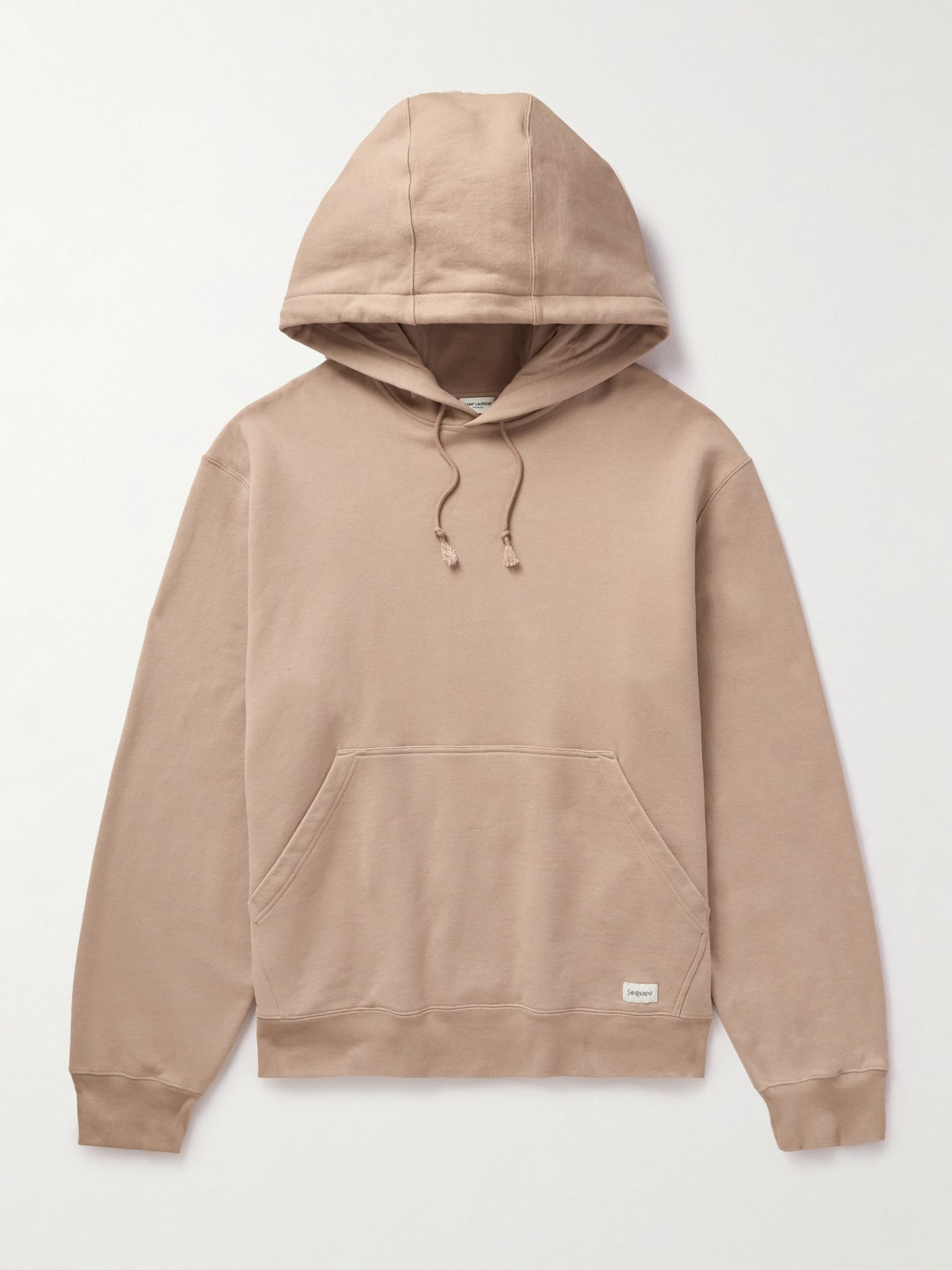 SAINT LAURENT's hoodie feels like a pre-loved style, with its soft colour, distressed drawstrings and oversized fit. It's made from fleece-back cotton-jersey and appliqued with a logo patch on the kangaroo pocket. Size & Fit - Fits true to size. Take your normal size - Designed for an oversized fit - Dropped shoulder seam - Mid-weight, slightly stretchy fabric - Model is shown wearing a S - Model measures: chest 36"/ 92cm, height 6'1"/ 185cm Details & Care - Beige fleece-back cotton-jersey - 100% cotton