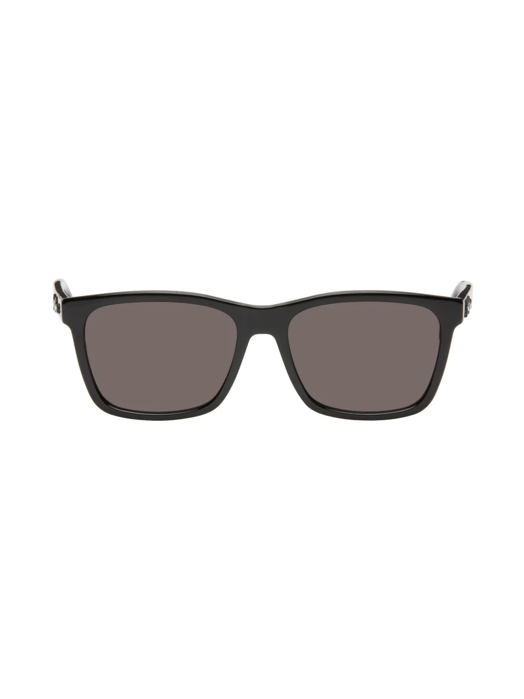 Square acetate-frame sunglasses in black. · Gray lenses · Integrated nose pads · Logo hardware at temples · Includes leather pouch · Size: 56.17 145 Supplier color: Black/Black/Black