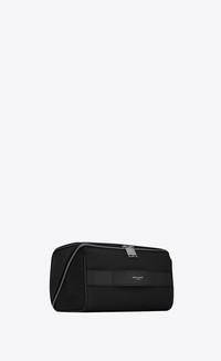 ZIPPED CASE WITH TOP HANDLE DECORATED WITH EMBOSSED SAINT LAURENT PARIS SIGNATURE. - 100% POLYAMIDE - DIMENSIONS: 21 X 13 X 14 CM - HANDLE DROP: 5 CM - ZIP CLOSURE - TOP HANDLE - INTERIOR: ONE ZIPPED POCKET, ONE PATCH POCKET - NYLON LINING - STYLE ID 812851568 - MADE IN ITALY