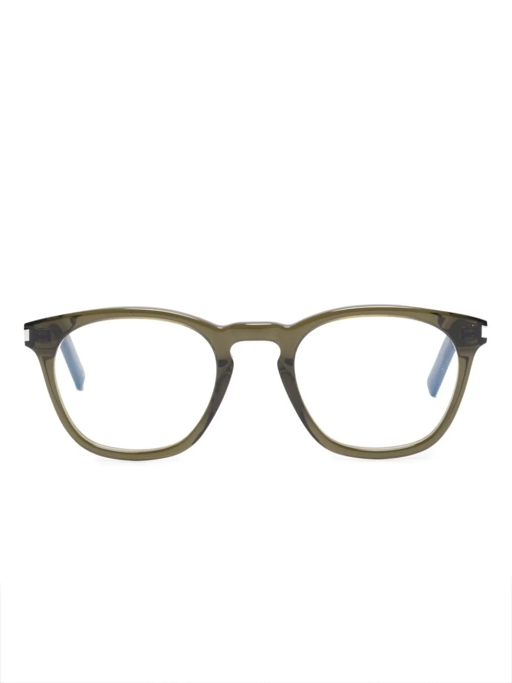 polished-effect round-frame glasses Highlights - Light green - Acetate - Polished effect - Round frame - Clear lenses - Raised bridge - Straight arms - Curved tips - These glasses come with a protective case. Made in Italy Composition Acetate 100% SIZE & FIT Measurement Arm Length 5.7 in(14.5 cm) Bridge Width 0.86 in(2.2 cm) Lens Diameter 1.96 in(5 cm) Total Width 5.51 in(14 cm)