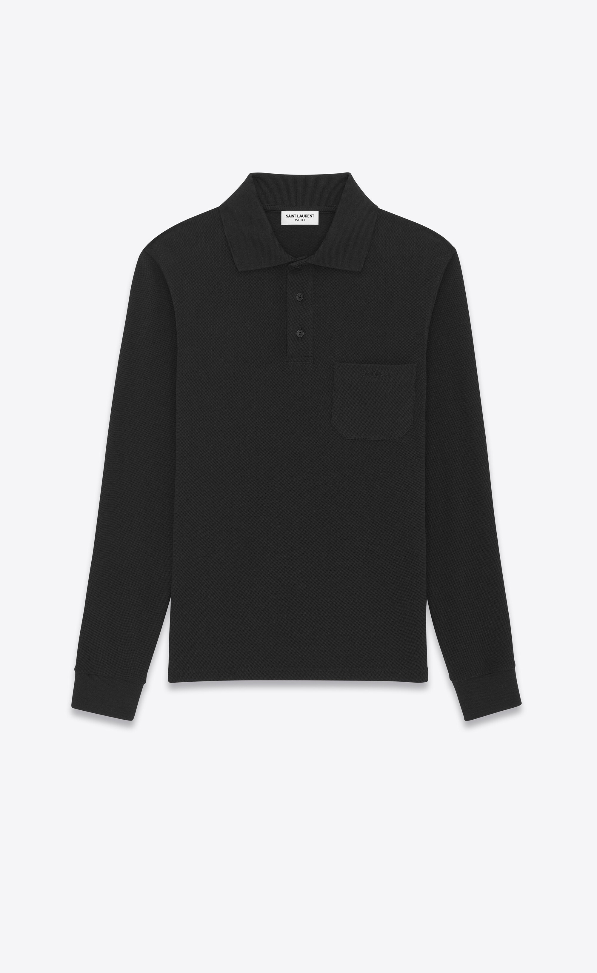 LONG-SLEEVE POLO SHIRT MADE WITH RECYCLED COTTON, FEATURING SIDE SLITS AND A PATCH POCKET ON THE CHEST WITH TONAL SAINT LAURENT EMBROIDERY. - 50% COTTON, 50% POLYESTER - RECYCLED COTTON - THREE-BUTTON PLACKET - POINTED COLLAR - SIDE SLITS - STYLE ID 750525Y37HC1000 - MADE IN ITALY