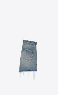 FIVE-POCKET JEAN SHORTS FEATURING RAW-EDGE CUFFS AND ALL-OVER METAL EYELETS. - 100% COTTON - BUTTON CLOSURE - FIVE POCKET - BELT LOOPS - RAW-EDGE CUFFS - METALLIC EYELETS - STYLE ID 606814YL8704137