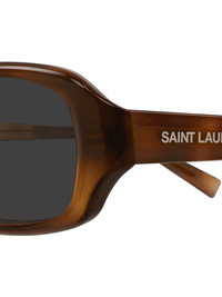 rectangular slim saint laurent sunglasses Highlights - Brown - Grey lenses - Logo detail - Rectangular frame - Nose pads - These glasses come with a protective case. Imported Composition Fabric 100% SIZE & FIT Measurement Arm Length 5.51 in(14 cm) Bridge Width 0.62 in(1.6 cm) Lens Diameter 2.04 in(5.2 cm) Total Width 5.11 in(13 cm)
