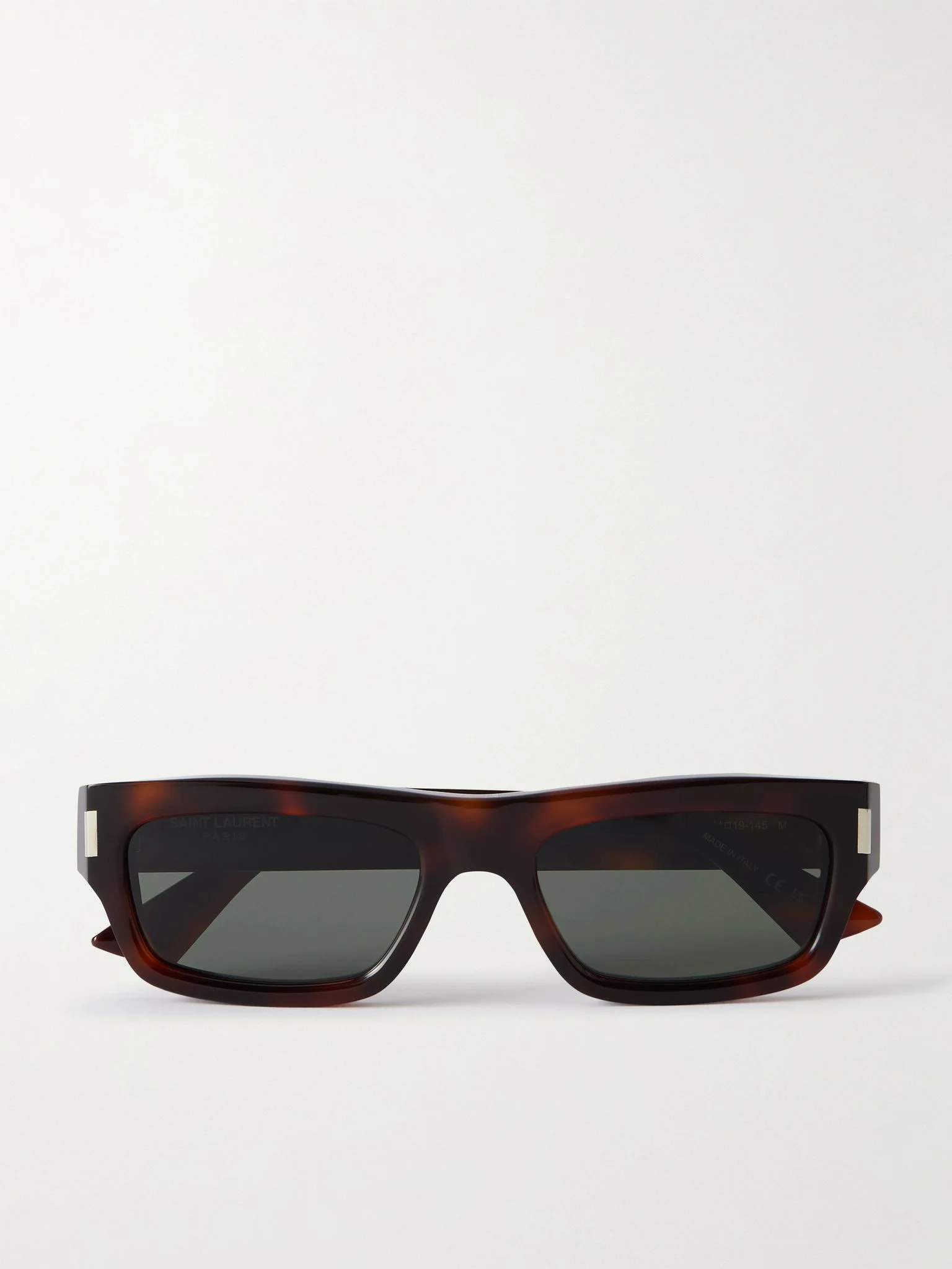 SAINT LAURENT's recent runway shows highlight the house's emphasis on accessories. From its Eyewear line, these rectangular-frame sunglasses are made from tortoiseshell acetate with silver-tone details at the temples and discreet logos along the arms. Details & Care - Tortoiseshell acetate - Come with a case - 100% UV protection