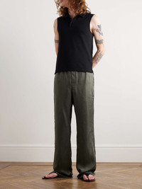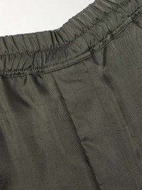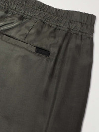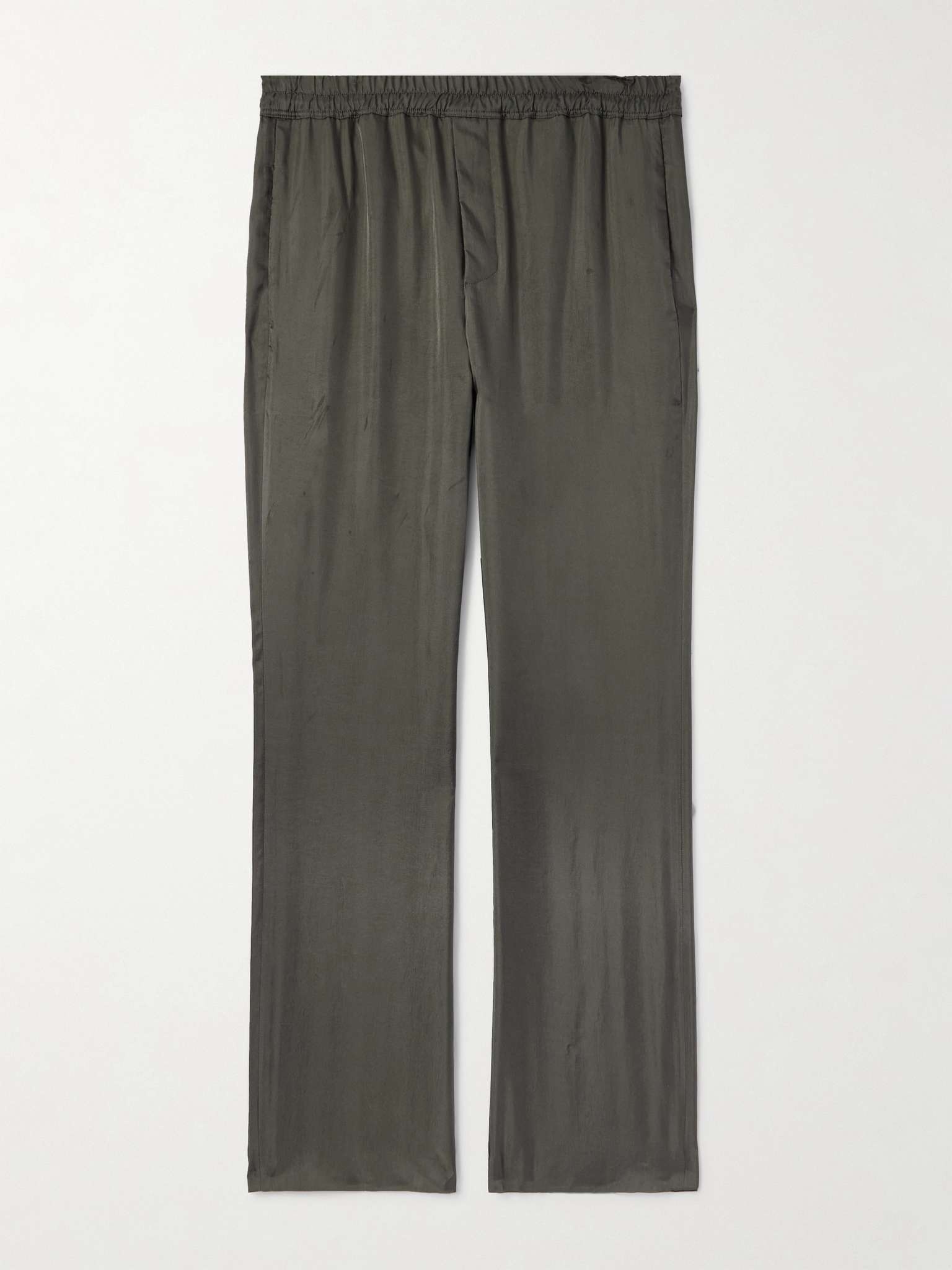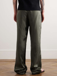 SAINT LAURENT's Italian-made trousers are cut from fluid, lustrous satin-twill for a rakish look. They're topped with a comfortable elasticated waistband and simply detailed with a logo tab along the back welt pocket. Wear yours with a polo or smarten them up with a collared shirt and blazer. Size & Fit - Fits true to size. Take your normal size - Relaxed-straight leg, mid-rise style - Elasticated at the waist - Lightweight, non-stretchy fabric - Model is shown wearing an IT 48 - Model measures: waist size 30, height 6'0"/ 183cm Details & Care - Army-green satin-twill - 100% cupro - Dry clean