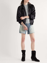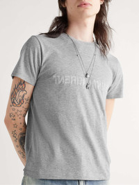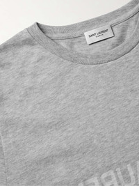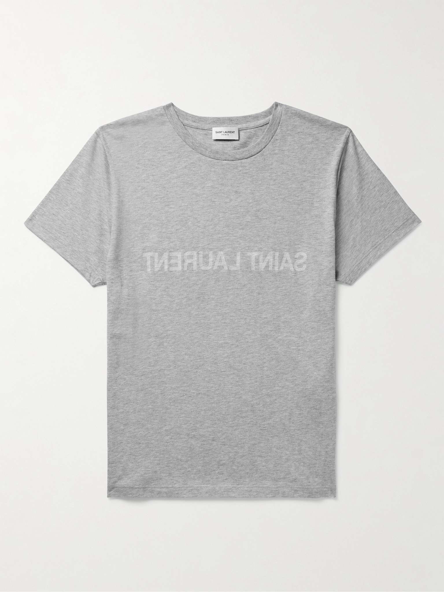 SAINT LAURENT's T-shirt is printed with a mirror image of the signature logo for a distinctive look. Made in Italy from smooth cotton-jersey, it's cut for a comfortable fit and has a distressed back hem. Style yours with jeans or layer it under a cardigan. Size & Fit - Fits true to size. Take your normal size - Those with broad shoulders may wish to take the next size up - This T-shirt is designed for a slightly loose fit - Lightweight, stretchy fabric - Model wears a S - Model measures: chest 36"/ 92cm, height 6'2"/ 188cm Details & Care - Tonal-grey mélange cotton-jersey - 100% cotton - Hand wash - This item has been imported
