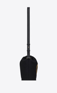 BUCKET BAG WITH DRAWSTRING CLOSURE DECORATED WITH AN EMBROIDERED RIVE GAUCHE EMBLEM WITH ICONIC YSL SIGNATURE. - 90% WOOL, 5% CALFSKIN LEATHER, 5% BRASS - DIMENSIONS: 21 X 23 X 14 CM / 8.3 X 9 X 5.5 INCHES - STRAP DROP : 50 CM / 19.7 INCHES - BRONZE-TONED METAL HARDWARE - INTERIOR: ONE MAIN COMPARTMENT, ONE REMOVABLE ZIPPED COMPARTMENT - GROSGRAIN LINING - STYLE ID 810808339 - MADE IN ITALY