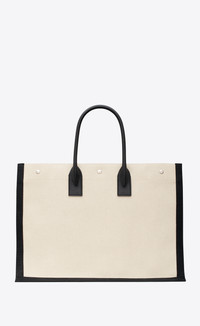 rive gauche large tote bag in canvas and smooth leather