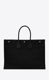 SAINT LAURENT RIVE GAUCHE TOTE BAG WITH FLAT HANDLES, FASTENED WITH THREE SAINT LAURENT-ENGRAVED SNAP BUTTONS AND FEATURING AN INSIDE ZIP POCKET. - 75 % VISCOSE, 15% LINEN, 5% POLYESTER, 5 % BULLSKIN - DIMENSIONS: 48 X 36 X 16 CM / 18.8 X 14.1 X 6.2 INCHES - HANDLE DROP: 17 CM - SILVER-TONED METAL HARDWARE - GROSGRAIN LINING - SNAP-BUTTON CLOSURE - INTERIOR: ONE MAIN COMPARTMENT, ONE ZIP POCKET - STYLE ID 809656258 - MADE IN ITALY
