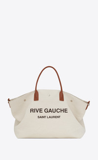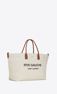 rive gauche maxi shopping bag in printed canvas and smooth leather