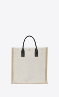 SAINT LAURENT TOTE WITH TUBULAR HANDLES, FEATURING AN INNER ZIP POCKET AND THREE SAINT LAURENT-ENGRAVED SNAP BUTTONS AT THE TOP. - 45 % LINEN, 45 % COTTON, 10 % LEATHER - DIMENSIONS: 38 X 39 X 17 CM / 14.9 X 15.3 X 6.6 INCHES - SILVER-TONED METAL HARDWARE - SNAP-BUTTON CLOSURE - STYLE ID 810591091 - MADE IN ITALY