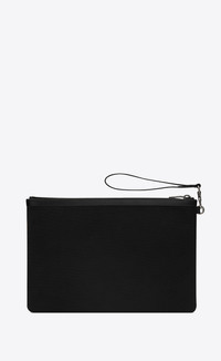 ZIPPED BEACH POUCH WITH A REMOVABLE LEATHER HANDLE. - 85% COTTON, 10% BULLSKIN, 5% BRASS - DIMENSIONS: 30.5 X 21 X 1.5 CM / 12 X 8.2 X 0.5 INCHES - BRUSHED SILVER-TONED METAL HARDWARE - ZIPPER CLOSURE - INTERIOR: ONE FLAT POCKET - ONE CENTRAL COMPARTMENT - STYLE ID 810799321 - MADE IN ITALY
