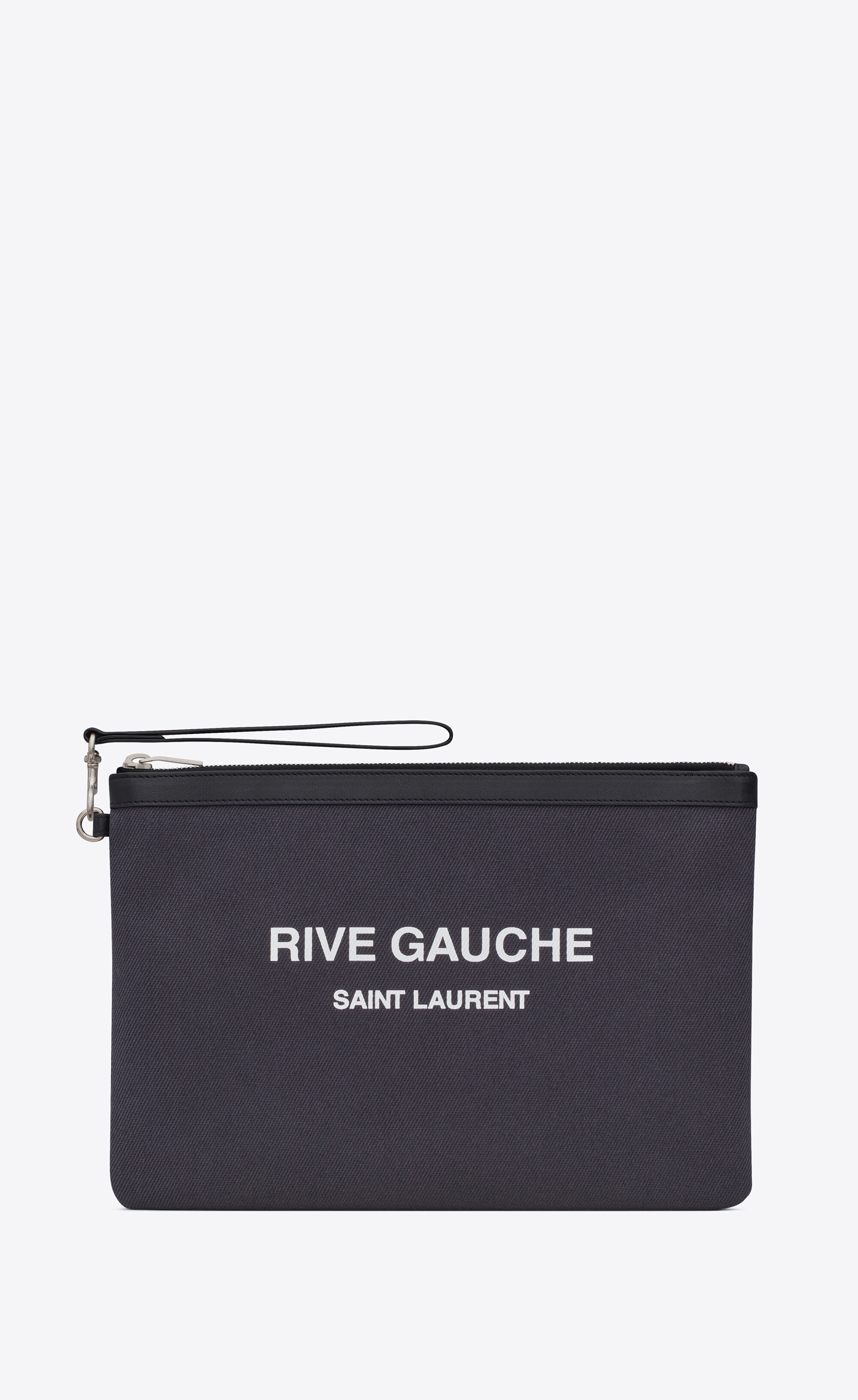 rive gauche zipped pouch in canvas and leather