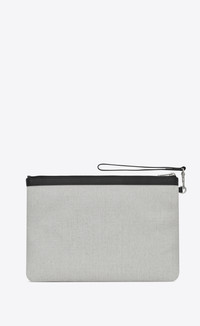 ZIPPERED BEACH POUCH WITH A REMOVABLE LEATHER HANDLE. - 100% LINEN - DIMENSIONS: 30,5 X 21 X 1,5 CM / 12 X 8.2 X 0.5 INCHES - BRUSHED SILVER-TONED METAL HARDWARE - ZIPPER CLOSURE - ONE FLAT POCKET - ONE CENTRAL COMPARTMENT - STYLE ID 809657876 - MADE IN ITALY