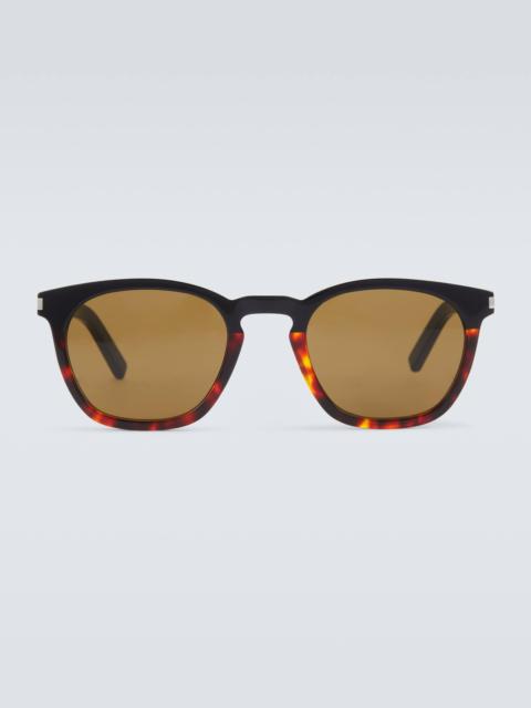 Emanating rock-and-roll cool, these sunglasses complete your look with a Saint Laurent edge. They’re made from rounded acetate frames with tinted lenses, logo engraving at the arms, and tortoiseshell-colored trims. Product Details - Frame color: black, tortoiseshell - Frame material: acetate - Lens color: khaki - comes in a case, comes with cleaning cloth - Lens filter category 3 - Made in Italy - Item number: P00689217 Size & Fit - Lens width: 51mm-2" - Bridge size: 23mm-0.9" - Earpiece length: 140mm-5.5"