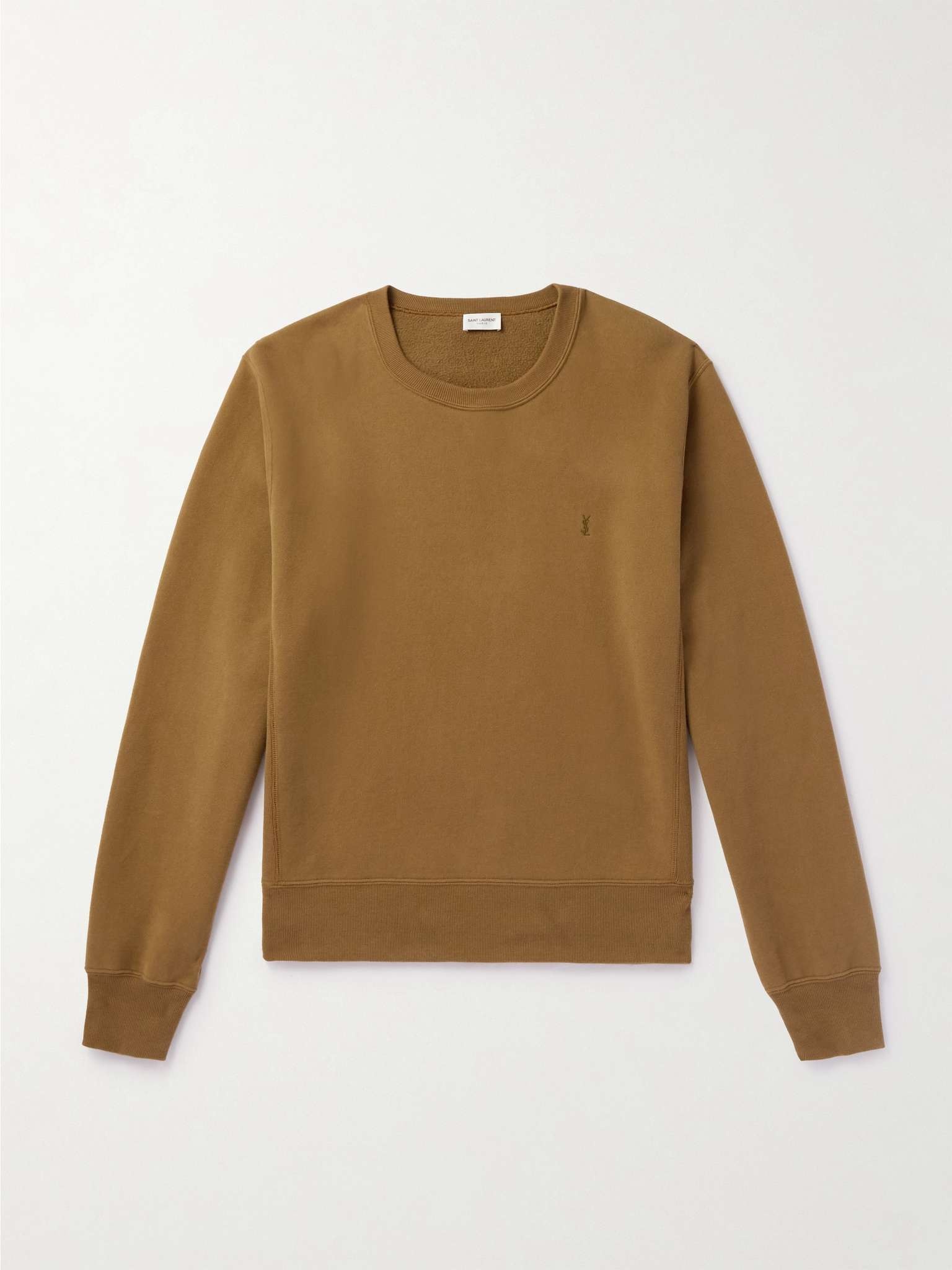 SAINT LAURENT's sweatshirt is embroidered with its iconic 'Cassandre' motif that was introduced in the early '60s. It's made from fleece-back cotton-jersey and has ribbed trims. Size & Fit - Fits true to size. Take your normal size - Designed for a regualr fit - Mid-weight, slightly stretchy fabric - Model is shown wearing a S - Model measures: chest 36"/ 92cm, height 6'1"/ 185cm Details & Care - Light-brown fleece-back cotton-jersey - 100% cotton