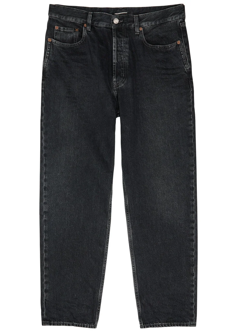 Info & Care Saint Laurent denim jeans Mid-rise fit, straight-leg cut, belt loops, five pockets, designer plaque at back, whiskered and faded finish Partially concealed button fastenings at front; 100% organic cotton; Machine wash cold inside out to avoid colour transfer; Size & Fit Front rise: 10.5 inches/ 27cm Inside leg length: 30 inches/ 76cm Midweight; Model is 6'1"/ 185cm and wears a size W32