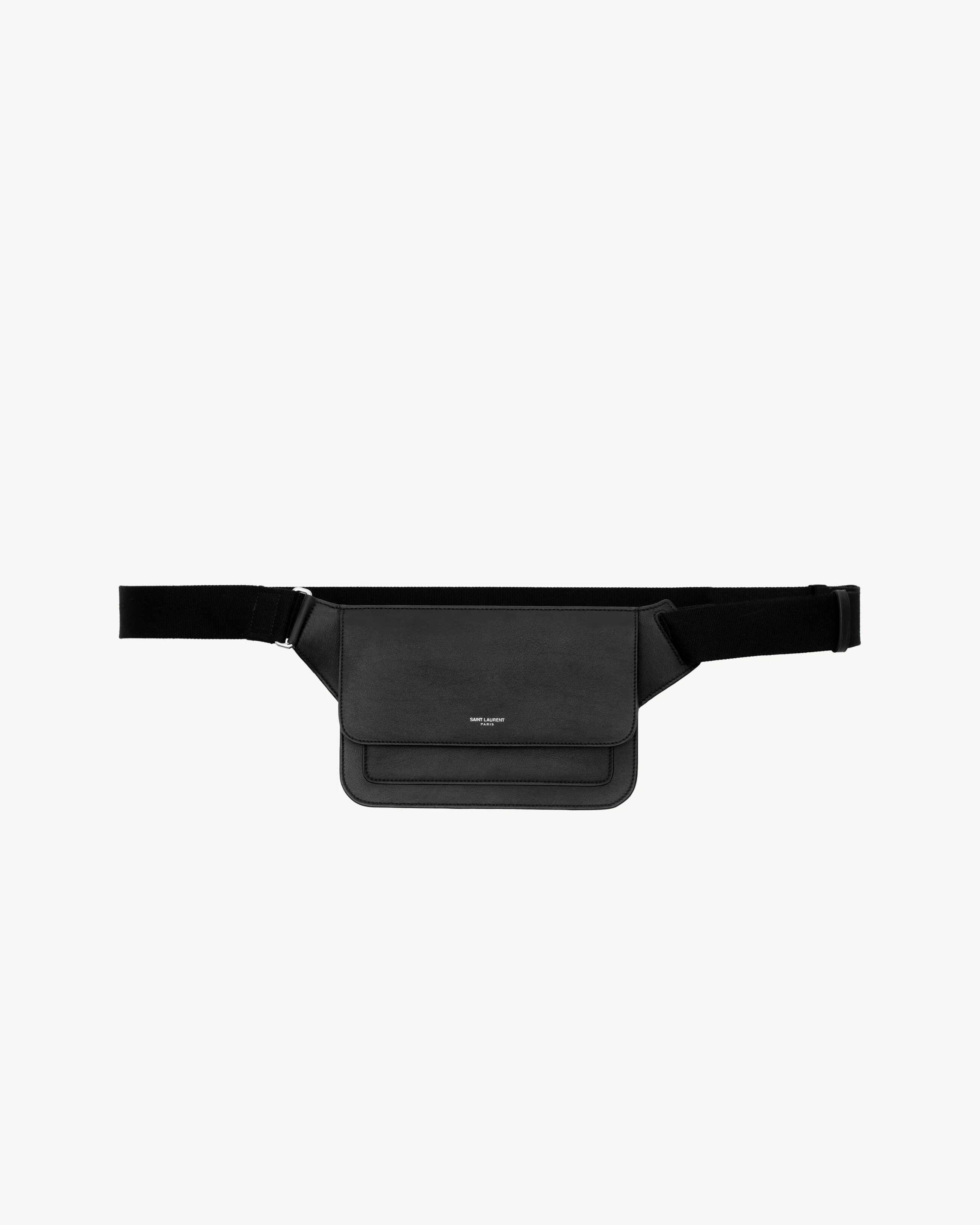 BELT BAG IN SUPPLE CALFSKIN, EMBOSSED WITH THE SAINT LAURENT PARIS SIGNATURE. - SILVER-TONED HARDWARE - ADJUSTABLE BUCKLE CLOSURE - DIMENSIONS: 25 X 14 X 3.5 CM / 9.8" X 5.5" X 1.3" - CALFSKIN LEATHER, BRASS - STYLE ID 823179AAEMZ1000 - MADE IN ITALY