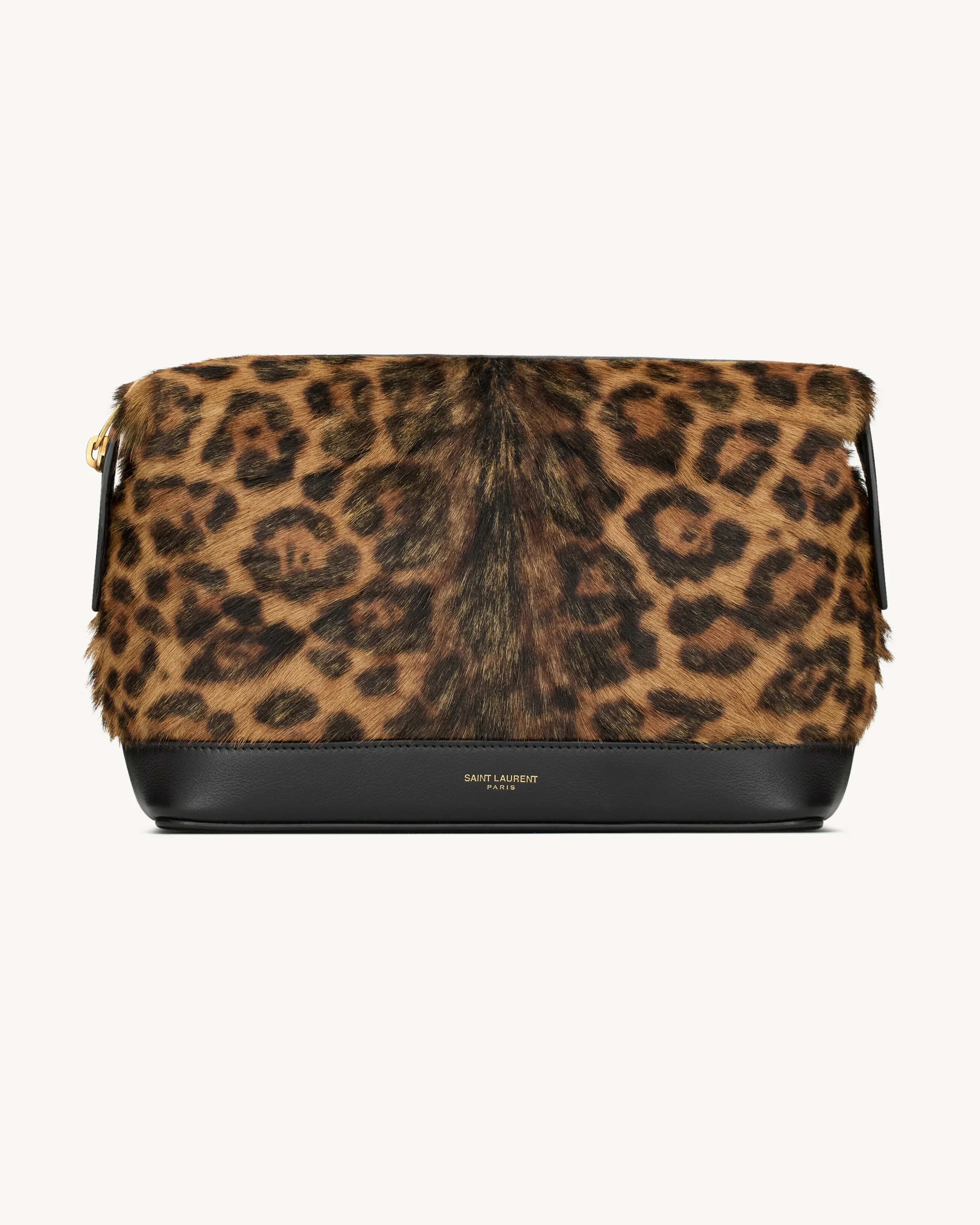 SMALL POUCH IN LEOPARD-PRINT PONY HAIR LEATHER, FEATURING THE EMBOSSED SAINT LAURENT PARIS SIGNATURE. - COTTON GROSGRAIN LINING - BRONZE-TONE HARDWARE - ZIP CLOSURE - DIMENSIONS: 38 X 27 X 5 CM / 15" X 10.6" X 2" - 95% CALFSKIN 5% BRASS - STYLE ID 840087AAE8I2063 - MADE IN ITALY