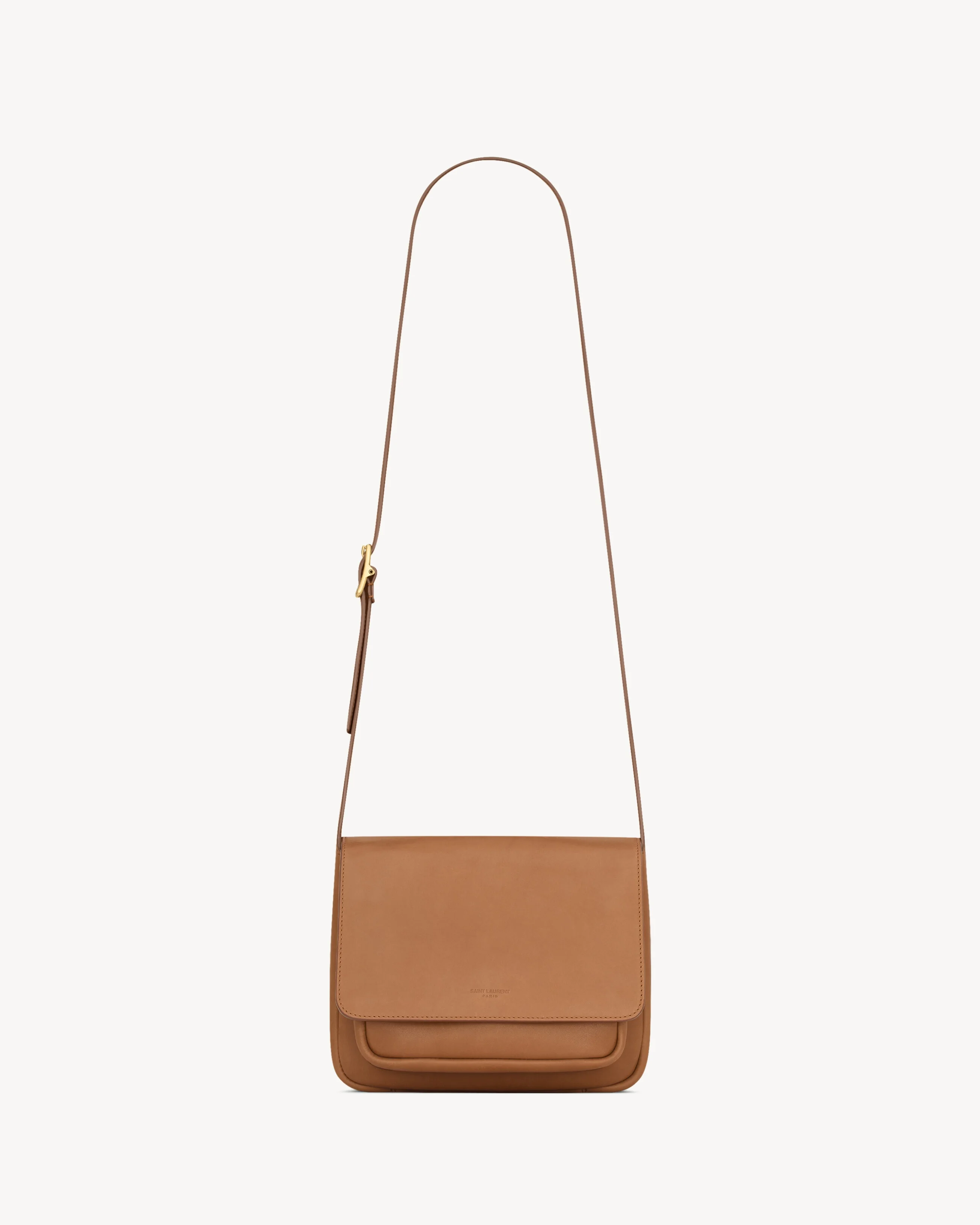 SMALL MESSENGER BAG LINED IN TONAL SUEDE, FEATURING A FRONT FLAP WITH DEBOSSED SAINT LAURENT PARIS SIGNATURE. THIS PRACTICAL BAG FEATURES MULTIPLE POCKETS, WHILE AN ADJUSTABLE STRAP ALLOWS FOR BESPOKE CARRY OPTIONS. - SUEDE LINING - BRONZE-TONE HARDWARE - SNAP-BUTTON CLOSURE - ONE ZIP POCKET - ONE OPEN POCKET UNDER FLAP - DIMENSIONS: 21 X 16 X 5 CM / 8.3" X 6.3" X 2" - STRAP DROP: 47 CM / 18.5" - 98% BOX LEATHER 2% BRASS - STYLE ID 819627BWR0W6309 - MADE IN ITALY