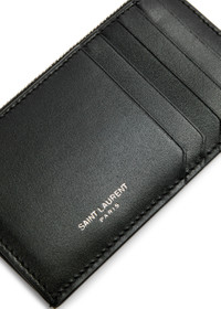 Info & Care Saint Laurent leather zip wallet; Designer-stamped, five card slots, zip-fastening accross top Presented in designer stamped box Size & Fit Dimensions: 13cm x 7cm x 1.5cm