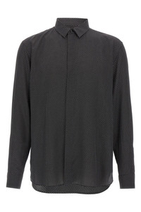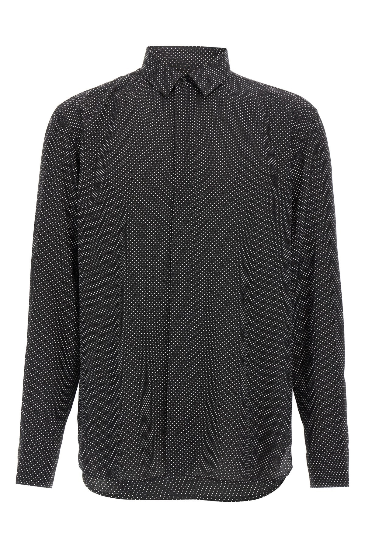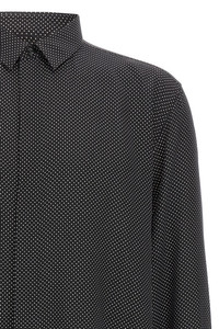 cod. 646850Y301W1000 Micro polka dot silk shirt with front button closure, long cuffed sleeves. Color: White/Black Size & Fit: true to size fit COLLAR size Composition: 100% silk Made in: Italy