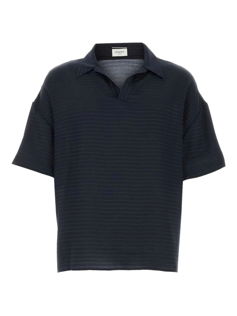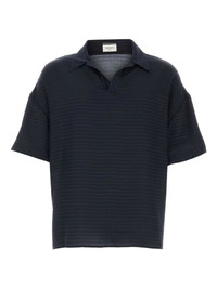 silk polo shirt Highlights - Navy blue - Horizontal stripe print - Polo collar - Split neck - Short sleeves Made in Italy Composition Silk 100%