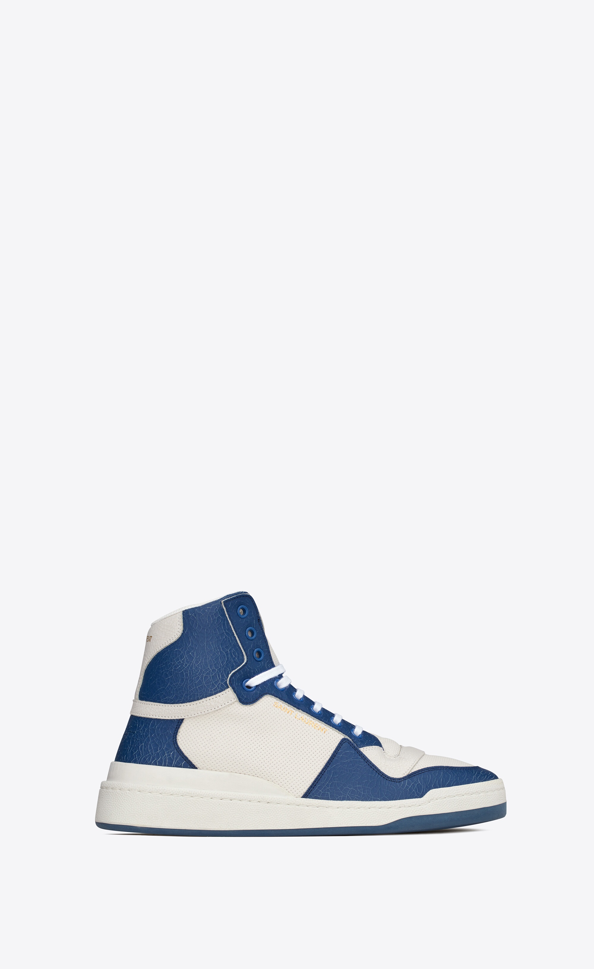 MID-TOP LACED SNEAKERS FEATURING PERFORATED CRACKED-EFFECT LEATHER, A GOLD-TONE SAINT LAURENT SIGNATURE ON THE SIDE AND GOLD-TONE SAINT LAURENT PARIS INSCRIPTION ON THE PULL TAB. - 100% CALFSKIN LEATHER - RUBBER SOLE - STYLE ID 610618AAAI59083 - MADE IN ITALY