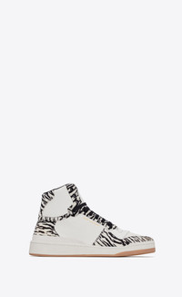 sl/24 mid-top sneakers in smooth leather and zebra print pony effect leather