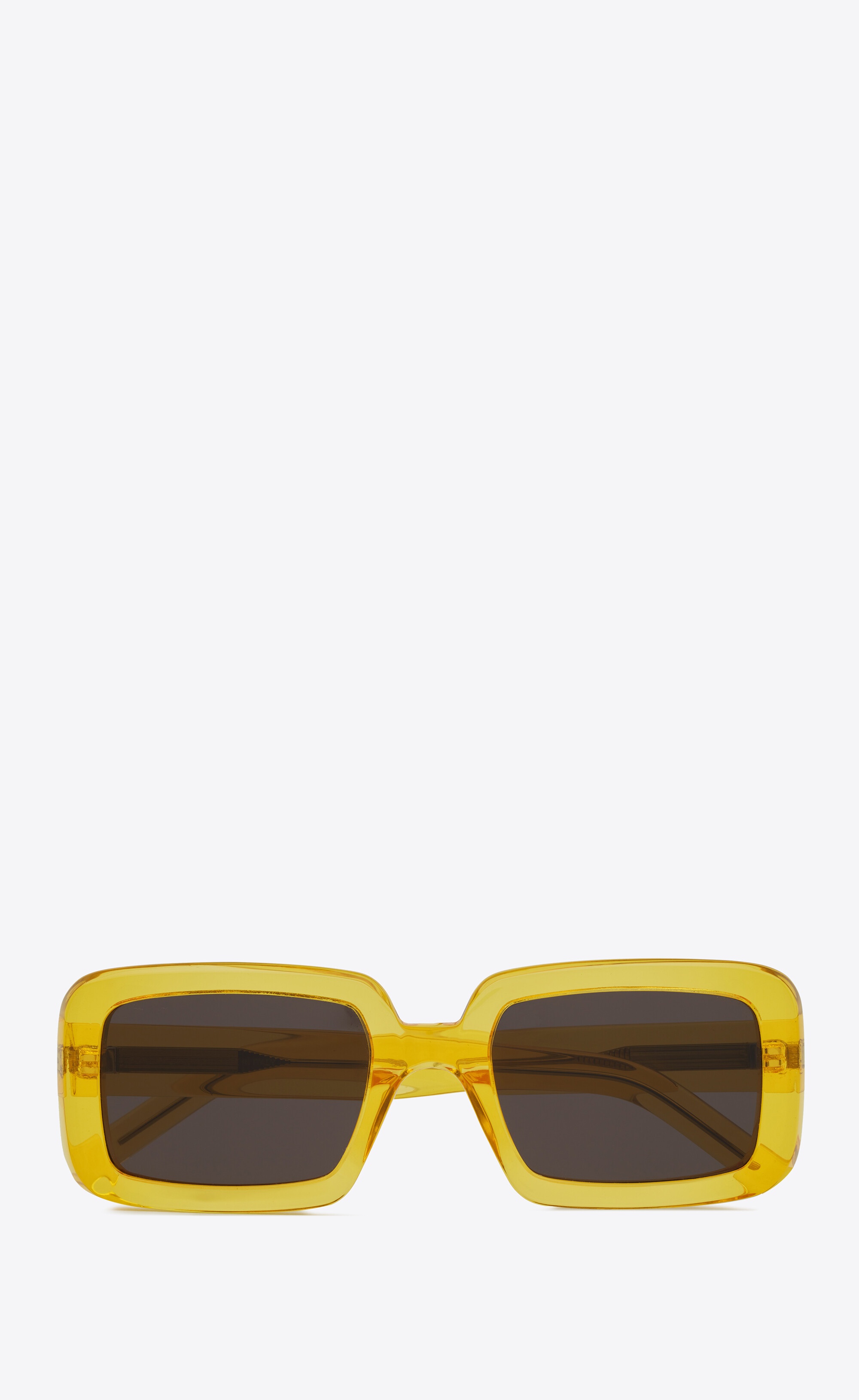 SUNGLASSES WITH BOLD RECTANGULAR ACETATE FRAMES AND NYLON LENSES, WITH SAINT LAURENT ENGRAVED TEMPLES. - 100% ACETATE - SAINT LAURENT ENGRAVED TEMPLES - 100% UVA/UVB PROTECTION - FRAMES NOT COMPATIBLE WITH CORRECTIVE LENSES - STYLE ID 810299498 - MADE IN ITALY