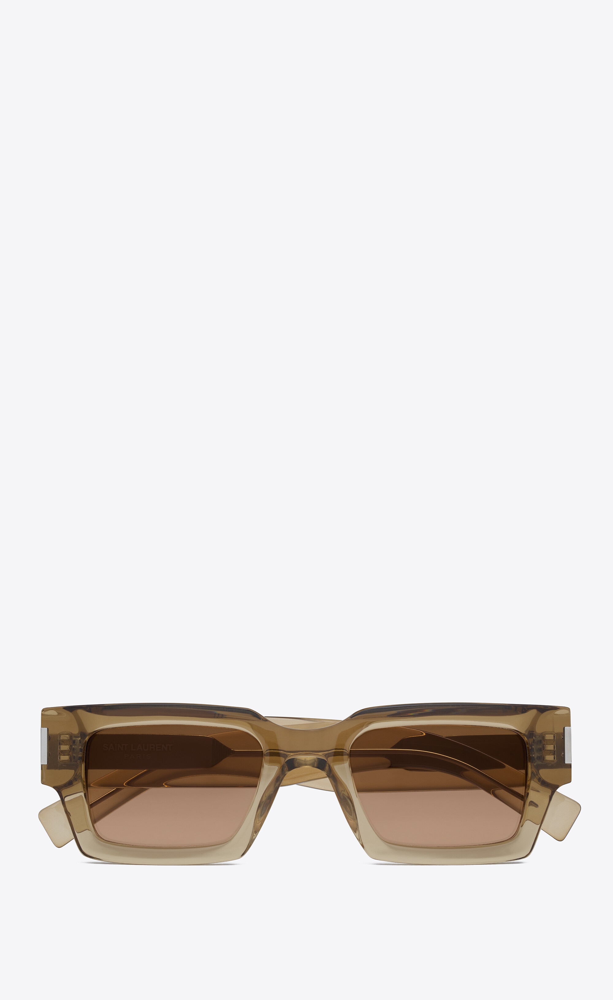 SUNGLASSES WITH GEOMETRICAL SQUARE FRAMES IN ACETATE, WITH NYLON LENSES AND A SAINT LAURENT ENGRAVING ON THE TEMPLES. - 80% RECYCLED ACETATE, 20% BIO NYLON - SAINT LAURENT ENGRAVED TEMPLES 100% UVA/UVB PROTECTION - STYLE ID 812856891 - MADE IN JAPAN