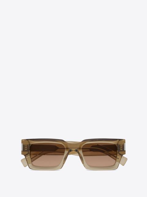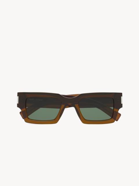 SUNGLASSES WITH GEOMETRICAL SQUARE FRAMES IN ACETATE AND WITH NYLON LENSES. - SAINT LAURENT ENGRAVED TEMPLES 100% UVA/UVB PROTECTION DIMENSIONS: LENS: 50 MM / 2", BRIDGE: 22 MM / 0.9", TEMPLE: 145 MM / 5.7" - ACETATE, NYLON - STYLE ID 736432Y99561033 - MADE IN JAPAN