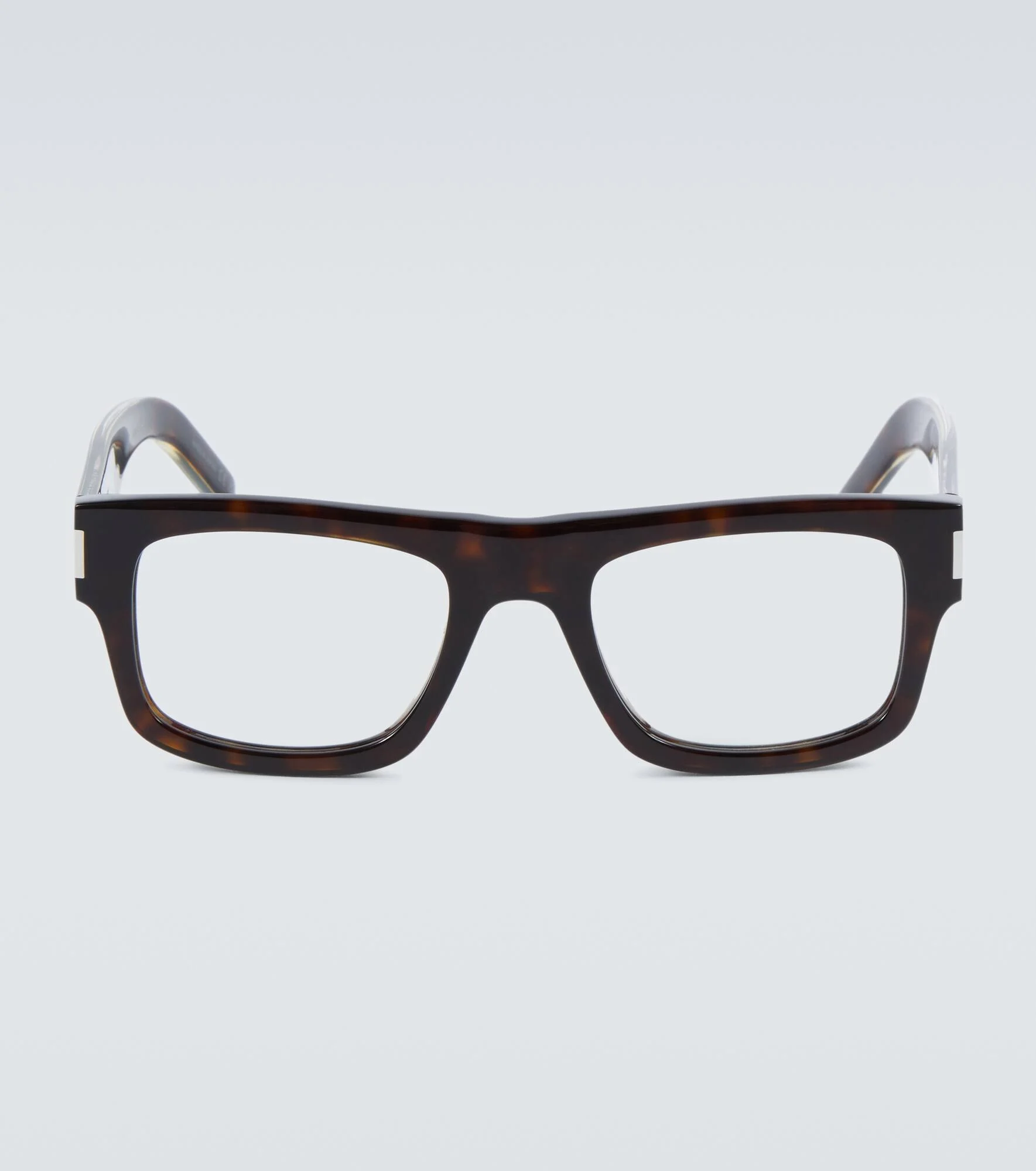 Elevate your everyday looks with these rectangular glasses from Saint Laurent. The acetate frames feature silver-toned logo-engraved accents on the sides. Product Details - Frame color: tortoiseshell - Frame material: acetate - Lens color: transparent - comes in a logo-embossed case - comes with cleaning cloth - Made in Japan - Item number: P00784947 Size & Fit - Lens width: 52mm-2.05" - Bridge size: 21mm-0.85" - Earpiece length: 145mm-5.7"