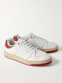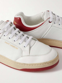 SAINT LAURENT's 'SL/61' sneakers are a great way to up your shoe game, while maintaining a classic look. They have panelled leather uppers with perforated toe boxes and are stamped with gold lettering across the back and sides. Size & Fit - Fits true to size. Take your normal size - European sizing Details & Care - White, red and gold leather (Calf) - Lace-up - Style number: 7136002W4AA