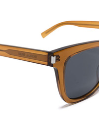 SL 712 sunglasses butterscotch brown high-shine finish transparent design wayfarer frame blue tinted lenses UV-protective lenses logo-engraved arm straight arms curved tips These glasses come with a protective case. Made in Italy Composition Acetate 100% SIZE & FIT Measurement Arm Length 5.7 in(14.5 cm) Bridge Width 0.78 in(2 cm) Lens Diameter 2.04 in(5.2 cm) Total Width 5.62 in(14.3 cm)