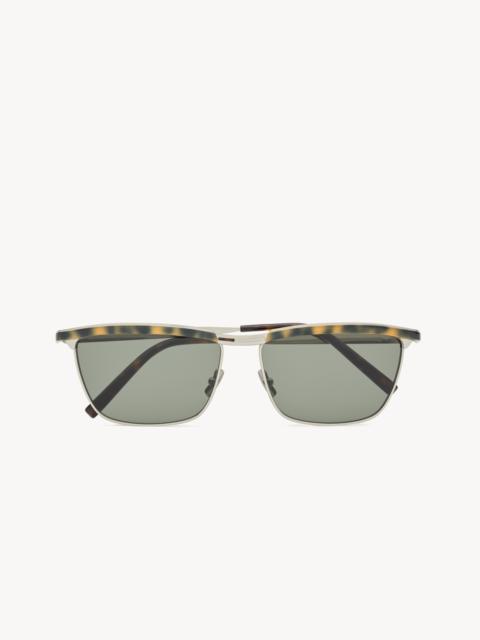 TRAPEZOID SUNGLASSES WITH METAL FRAMES AND NYLON LENSES, FEATURING A DOUBLE BRIDGE AND TOP BAR WITH TORTOISESHELL INLAY. - SAINT LAURENT ENGRAVED TEMPLES - 100% UVA/UVB PROTECTION - FRAMES COMPATIBLE WITH PRESCRIPTION LENSES - METAL NOSE PADS - LENS: 57 MM / 2.2" - BRIDGE: 15 MM / 0.6" - TEMPLE: 140 MM / 5.5" - 80% METAL 20% NYLON - STYLE ID 843043Y99698003 - MADE IN JAPAN