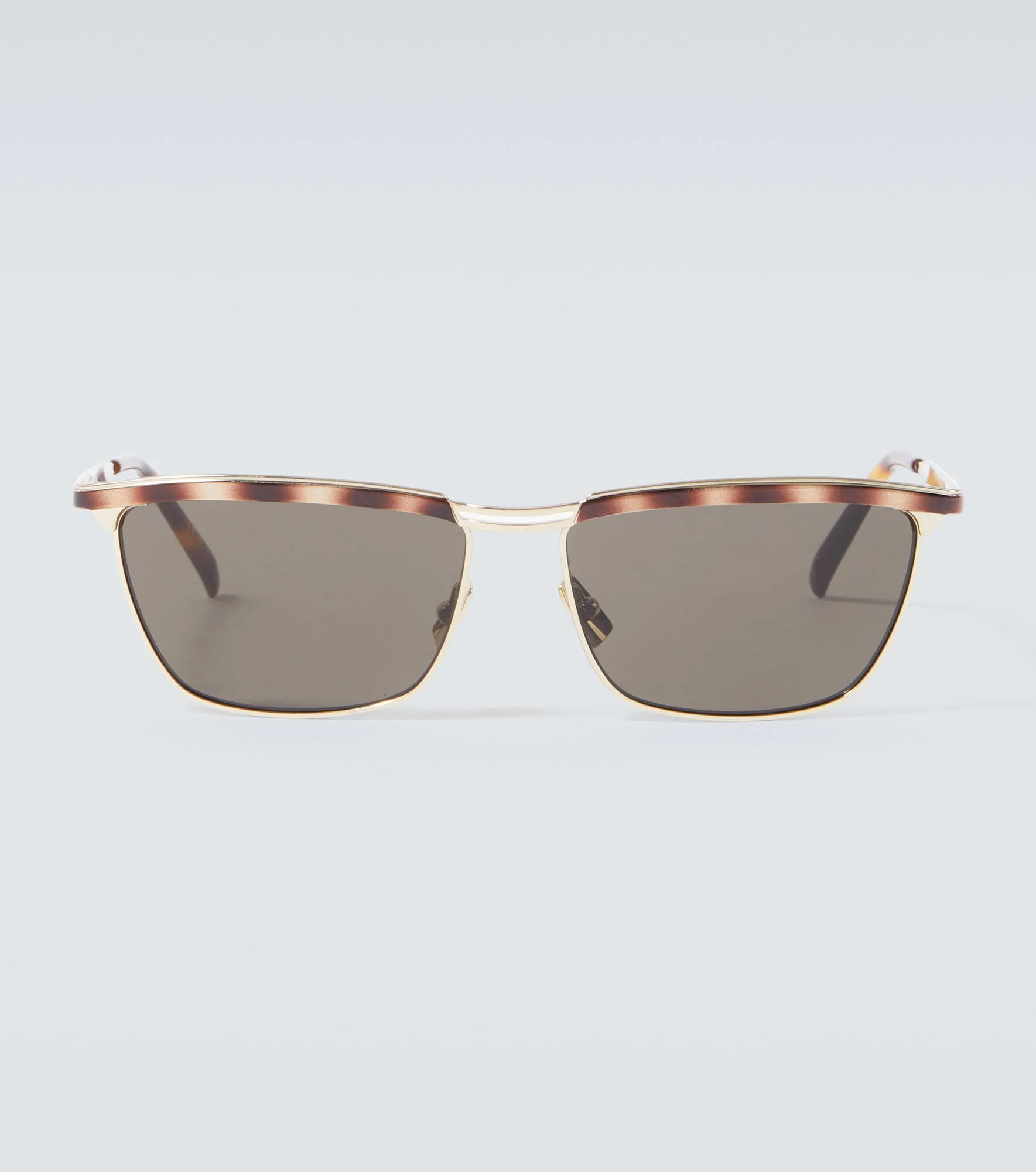 Since its conception in 1961, Saint Laurent has been coveted for its elegant Parisian aesthetic. These SL 795 Joe rectangular sunglasses feature Havana trims and slim gold metal temples engraved with logo lettering. Product Details - Frame material: metal, acetate - Frame color: gold, brown - Lens filter category 3 - Lens color: grey - Made in Japan - Includes: case, cleaning cloth - The color of the case may vary - Item number: P01099614 Size & Fit - Lens width: 57mm-2.25" - Bridge size: 15mm-0.6" - Earpiece length: 140mm-5.5"
