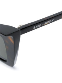SL372003 cat eye-frame sunglasses It's a well-known fact that the second you pull on sunglasses you instantly appear cooler and more mysterious. It's also a fact that the effect is multipied when the sunglasses in question are from Saint Laurent Eyewear. Feel the power of this tortoiseshell pair for yourself. Highlights - Cat eye frame - Tinted lenses - Logo-embossed arm - Straight arms - Curved tips - Tortoiseshell - Curved bridge - We know you'll look after them, but these glasses come with protection, just in case. Made in Italy Composition Acetate 100% SIZE & FIT Measurement Arm Length 5.7 in(14.5 cm) Bridge Width 0.62 in(1.6 cm) Lens Diameter 2.12 in(5.4 cm) Total Width 5.7 in(14.5 cm)