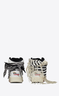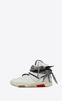 HIGH-TOP LACED SNEAKERS WITH A BANDANA AND OVERSIZED CONTRASTING LACES WRAPPED AROUND THE SHOE, FEATURING CRACKED AND PERFORATED LEATHER DETAILS AND A SAINT LAURENT SIGNATURE EMBOSSED ON THE PULL TAB. - 80% CALFSKIN LEATHER, 20% POLYAMIDE - RUBBER SOLE - STYLE ID 68609304GAB9071 - MADE IN ITALY