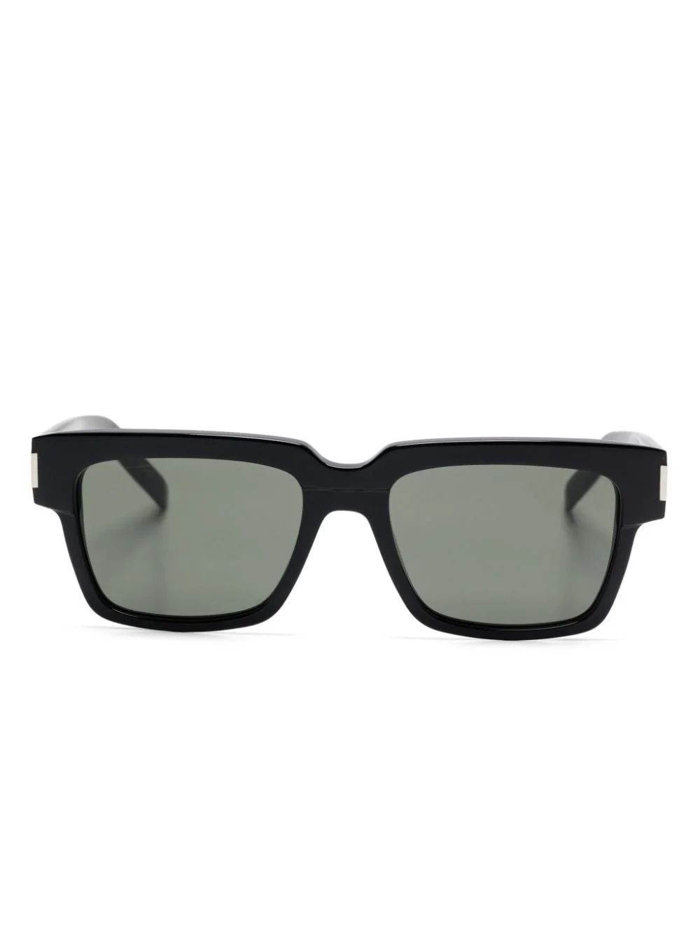 square-frame sunglasses Highlights - Black - Square frame - Grey tinted lenses - Straight arms - Logo-engraved arm - Curved tips - These glasses come with a protective case. Made in Italy Composition Acetate 100% SIZE & FIT Measurement Arm Length 5.7 in(14.5 cm) Bridge Width 0.7 in(1.8 cm) Lens Diameter 2.12 in(5.4 cm) Total Width 5.7 in(14.5 cm)