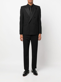 straight-leg tailored trousers black wool/silk/cotton blend tailored cut straight leg mid-rise concealed front fastening belt loops two rear welt pockets Made in Italy Composition Outer: Wool 100%, Polyester 100% Lining: Silk 100%, Cotton 97%, Spandex/Elastane 3% SIZE & FIT Model measurements Height 6 ft 2 in(1.89 m) Bust/Chest 35.03 in(89 cm) Hips 38.18 in(97 cm) Waist 29.92 in(76 cm) FittingInformation This piece fits true to size. We recommend you get your regular size Cut for a slim fit Made with a mid-weight non-stretch fabric
