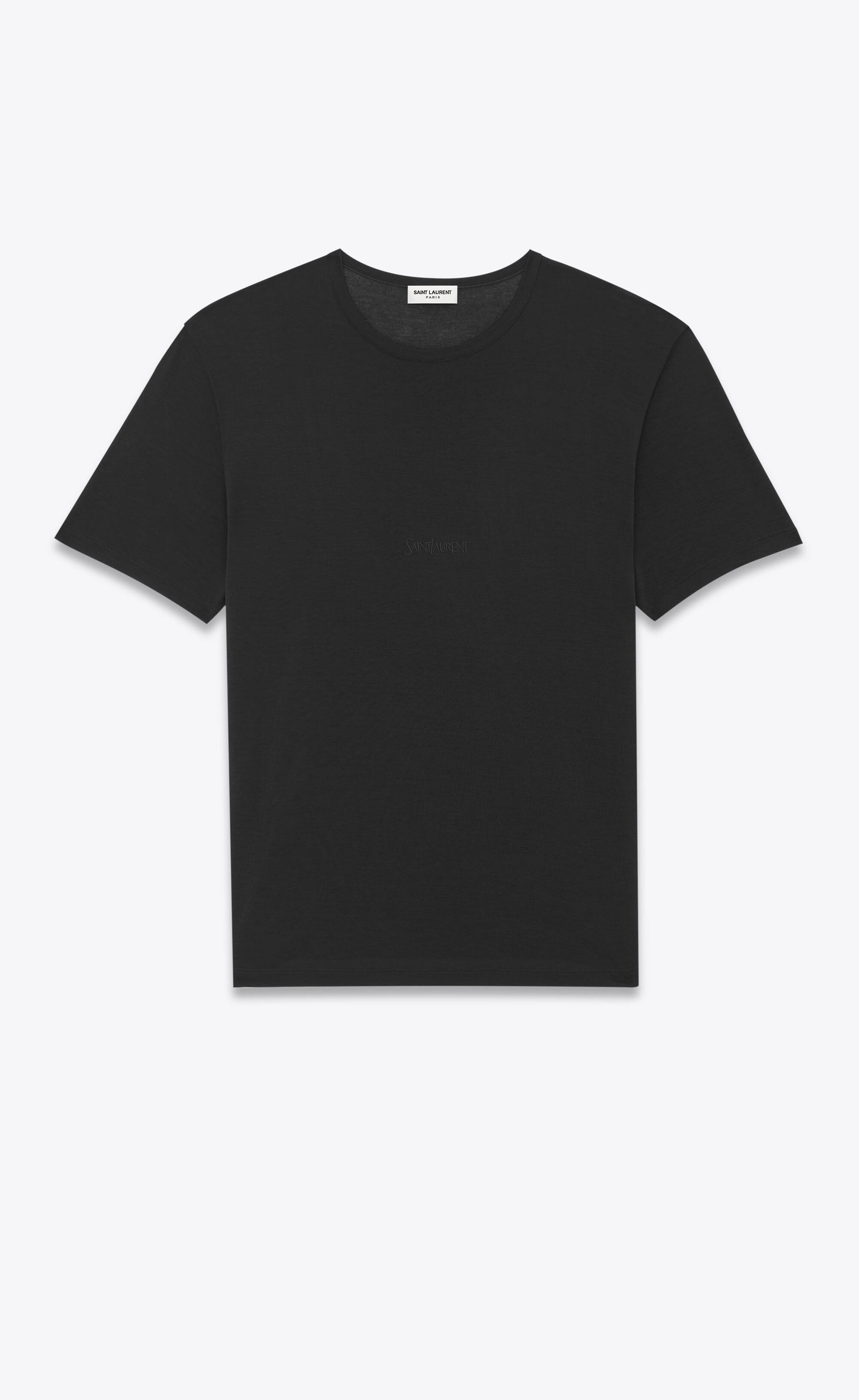 SEMI-SHEER SHORT-SLEEVE CREW-NECK T-SHIRT MADE WITH RESPONSIBLE VISCOSE, FEATURING A TONAL SAINT LAURENT EMBROIDERY ON THE CHEST. - 100% VISCOSE - RESPONSIBLE VISCOSE - CREWNECK COLLAR - STYLE ID 749102Y37IL1000 - MADE IN ITALY